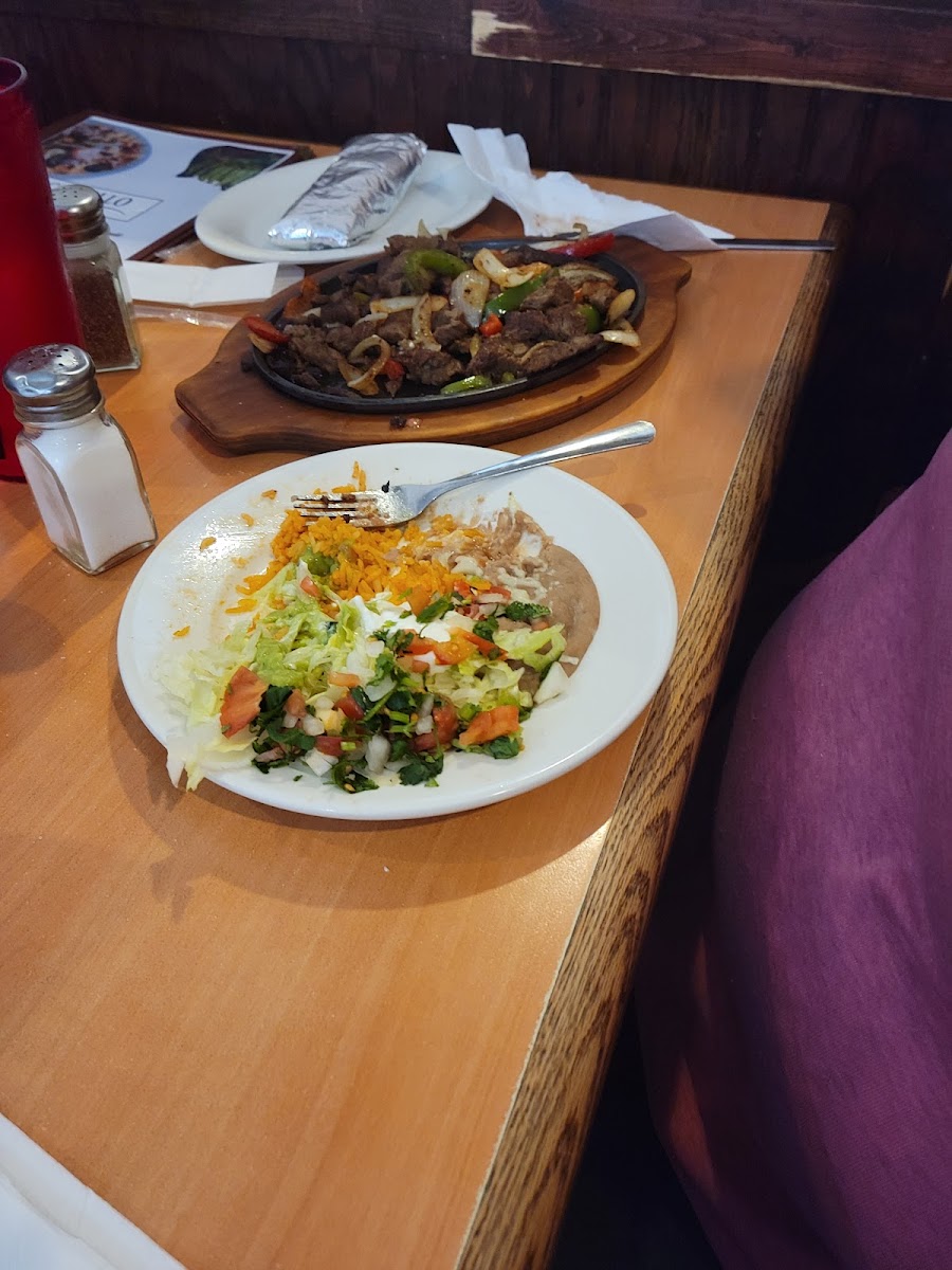 The service was good. The dishes came out a little strange because everything came out in pieces. My husband got the fajitas before he got any of the sides. I got my enchilada long before I got my shrimp taco. The Enchilada had been sitting under the heat lamp, a little too long. The end of it was hard and crunchy and you can see where certain cheeses that burnt onto the plate. The margarita was very good.